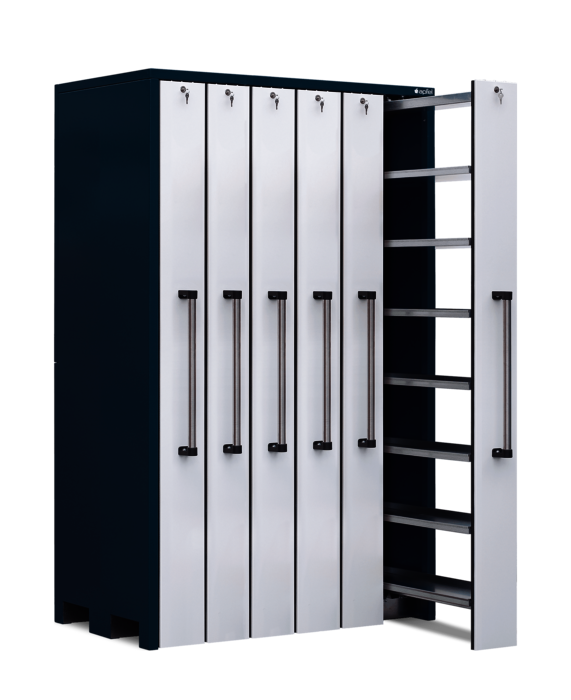 Der Vertikallagerschrank mit 7 Universalwannen pro Auszug