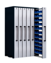 Lagerschrank mit 6 Vertikalauszügen à 200 mm Breite mit je 300 kg Traglast