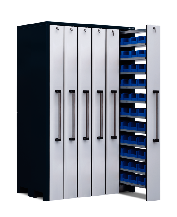Der Vertikallagerschrank für die Lagerung in Lagersichtkästen