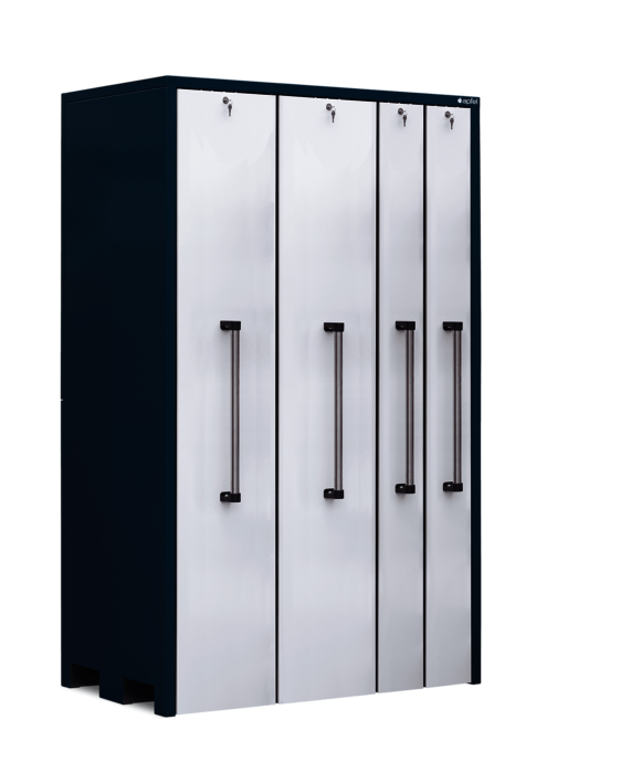 Lagerschrank mit 2 Vertikalauszügen à 400 mm Breite und 2 Vertikalauszügen à 200 mm Breite mit je 300 kg Traglast