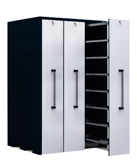 Lagerschrank mit 3 Vertikalauszügen à 400 mm Breite mit je 300 kg Traglast