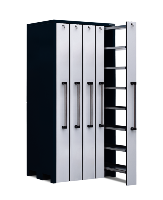 Der Vertikallagerschrank mit 7 Universalwannen pro Auszug