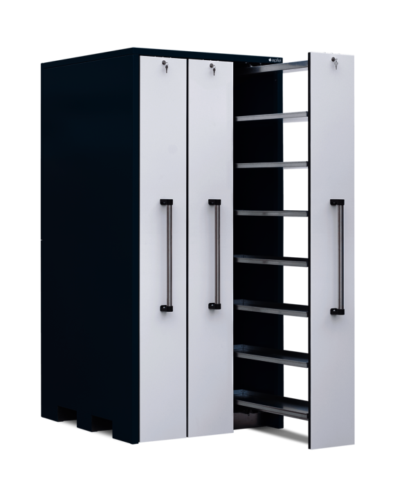 Lagerschrank mit 3 Vertikalauszügen à 300 mm Breite mit je 300 kg Traglast