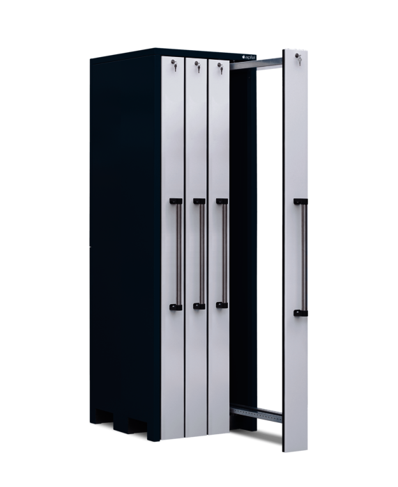 Lagerschrank mit 4 Vertikalauszügen à 150 mm Breite mit je 300 kg Traglast