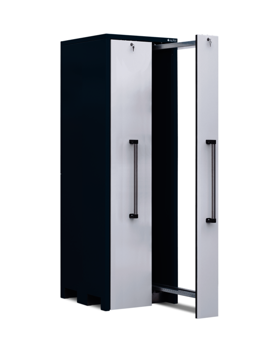 Lagerschrank mit 1 Vertikalauszug à 400 mm und 1 Vertikalauszug à 200 mm Breite mit je 300 kg Traglast