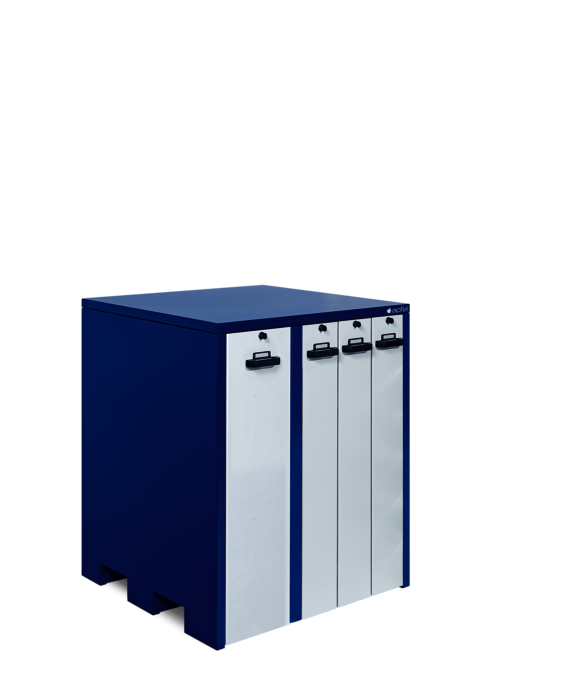 Werkzeugschrank mit 3 Vertikalauszügen à 180 mm Breite mit je 900 kg Traglast und 1 Vertikalauszug à 300 mm Breite mit 1.800 kg Traglast