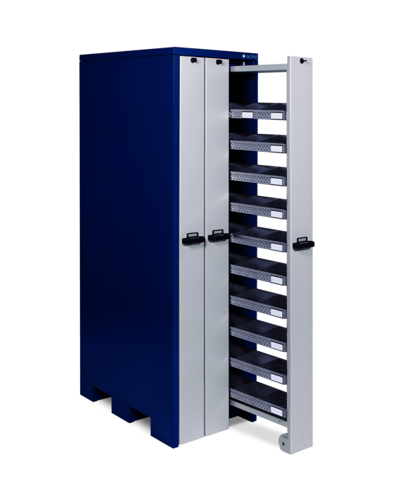Werkzeugschrank mit 3 Vertikalauszügen à 180 mm Breite mit je 900 kg Traglast
