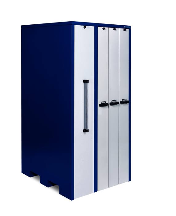Werkzeugschrank mit 3 Vertikalauszügen à 180 mm Breite mit je 900 kg Traglast und 1 Vertikalauszug à 300 mm Breite mit 1.800 kg Traglast