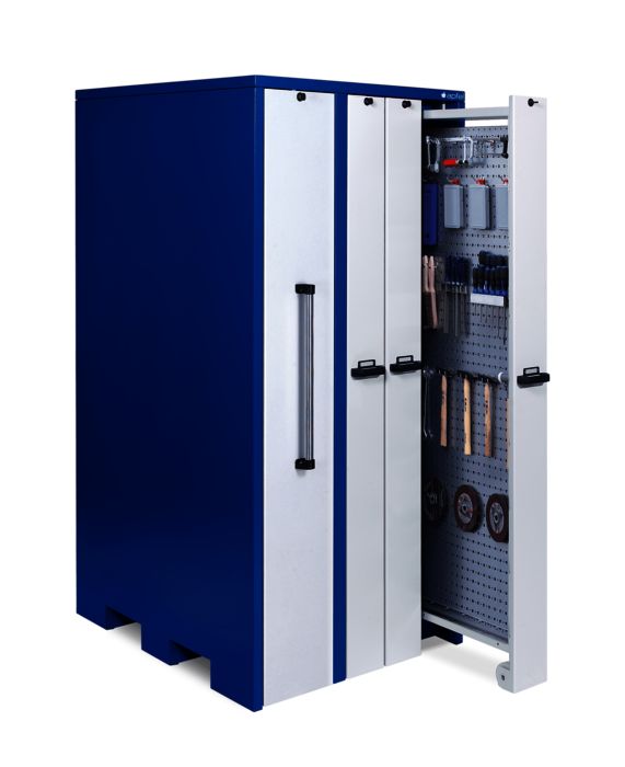 Der Werkzeugschrank im Maximalformat mit zwei Auszugsbreiten zur Lagerung verschieden dimensionierter Werkzeuge auf einer Gesamtfläche von ca. 16 m²