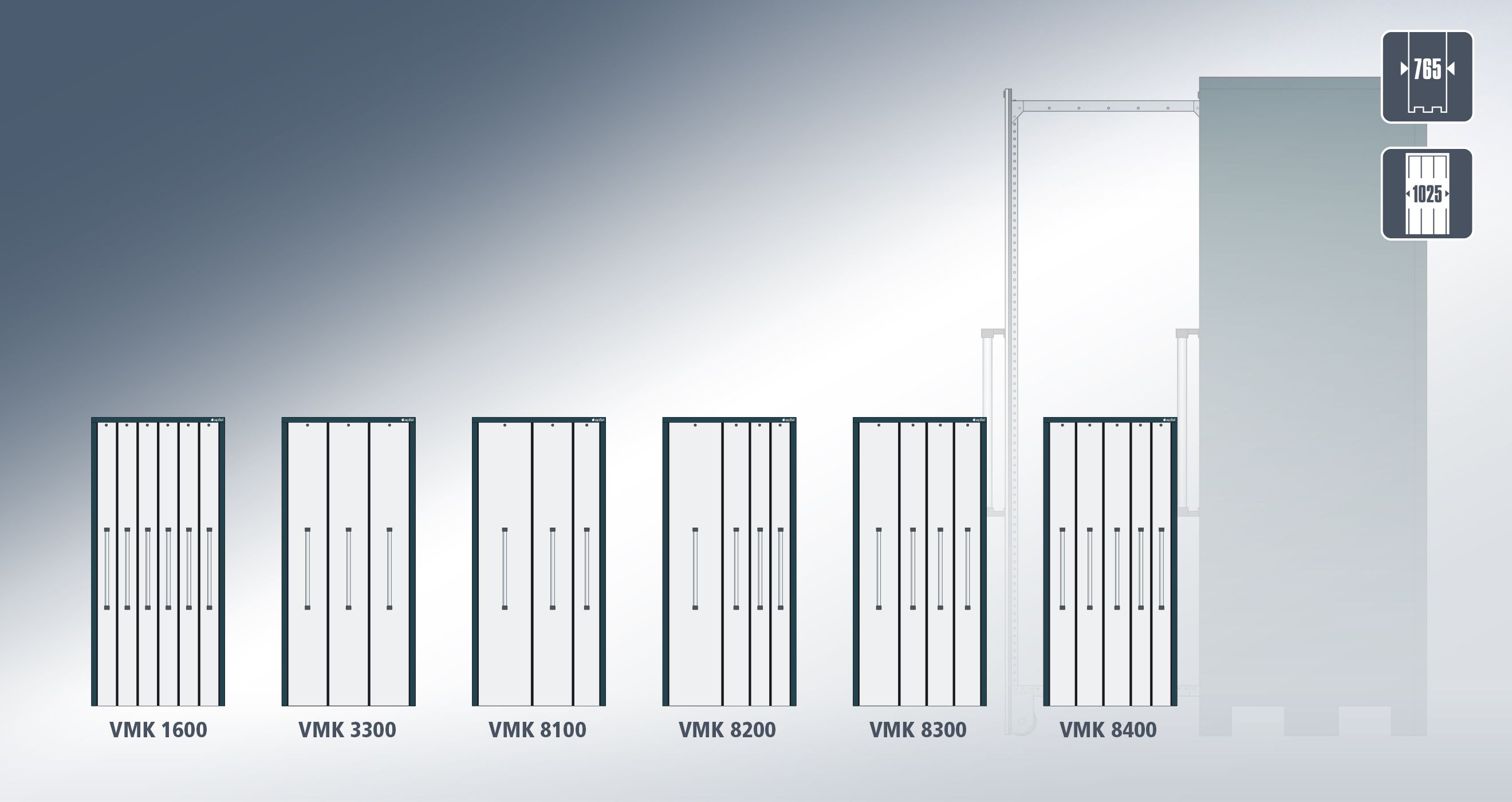 - VMK 8300 (1 cassetto di 300 mm di larghezza, 3 cassetti di 200 mm di larghezza)