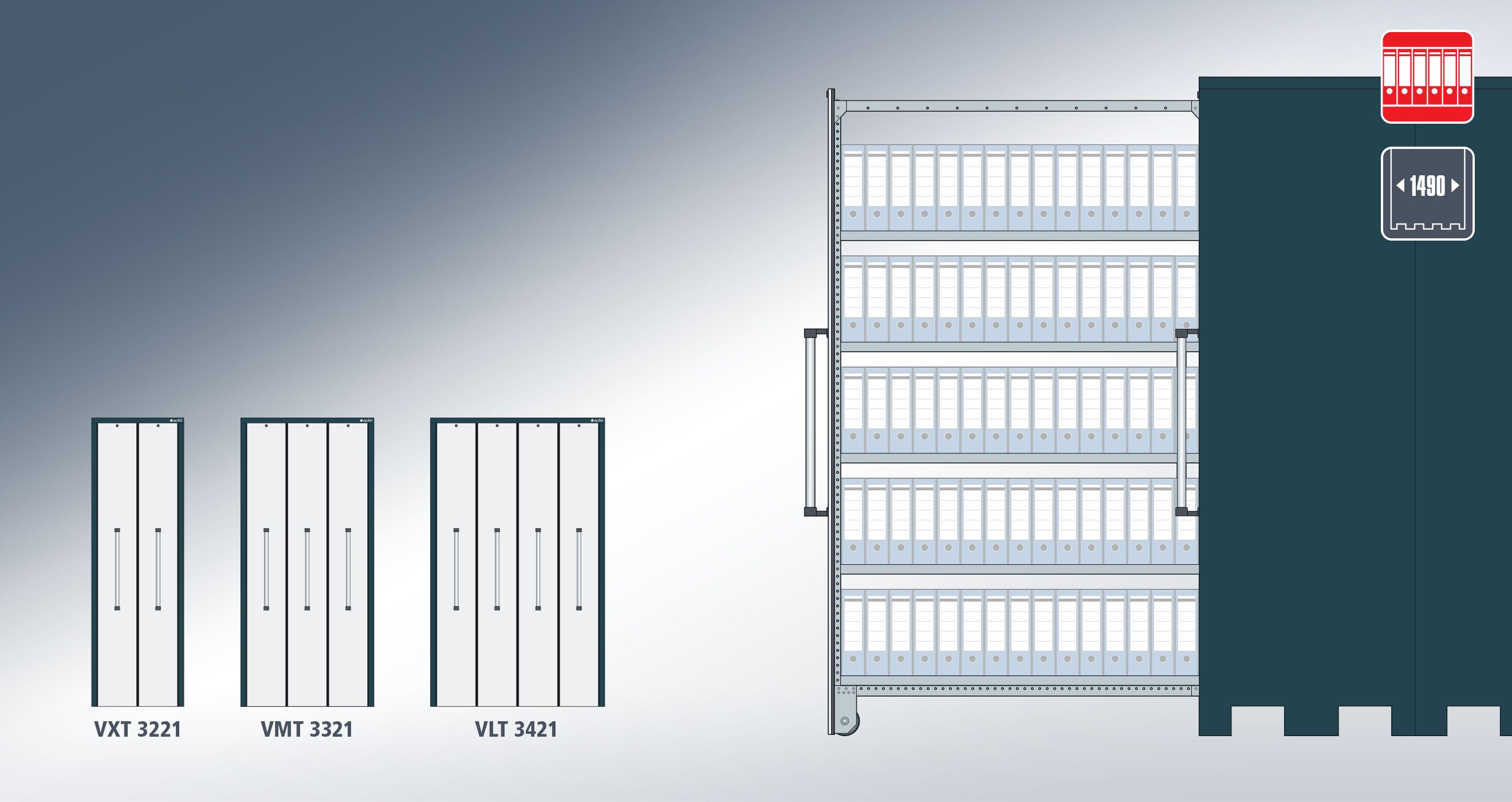 Gli armadi magazzino Set O con 1.490 mm di profondità: