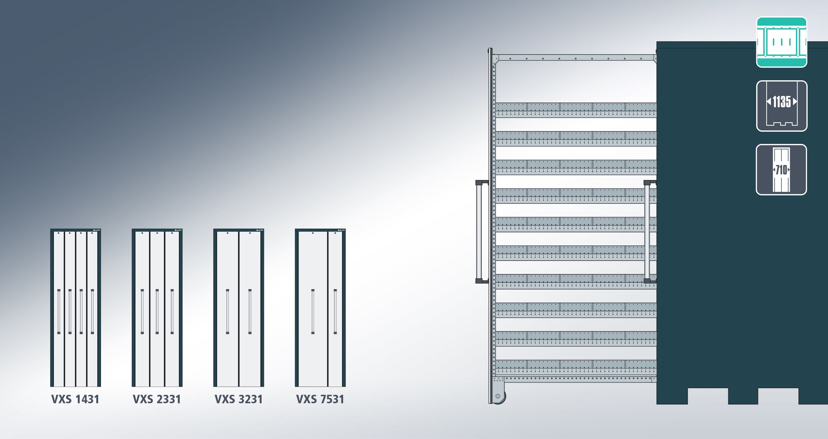 - VXS 7531 (1 cassetto di 400 mm di larghezza, 1 cassetto di 200 mm di larghezza)