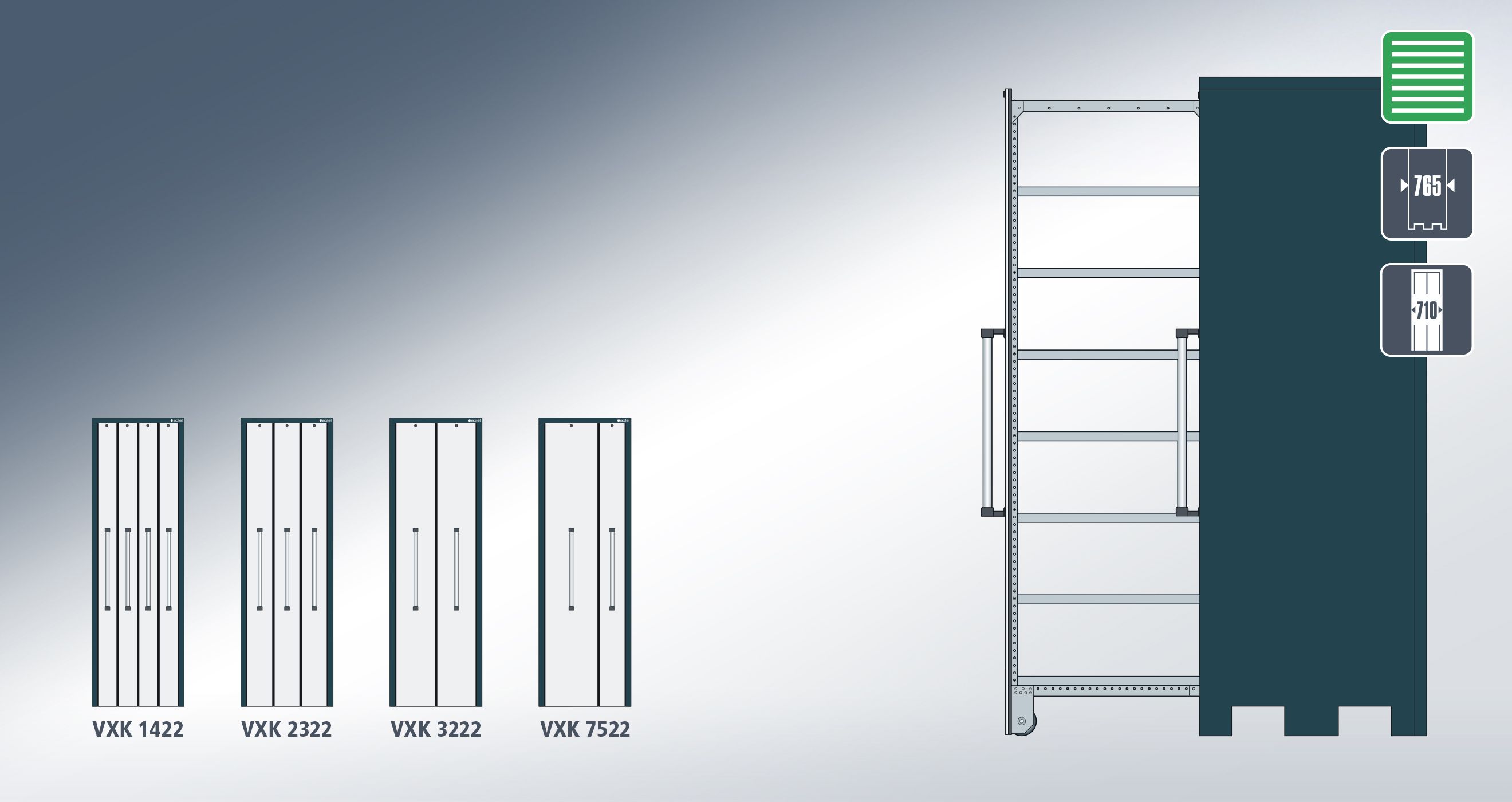 Gli armadi magazzino Set K con 765 mm di profondità e 710 mm di larghezza: