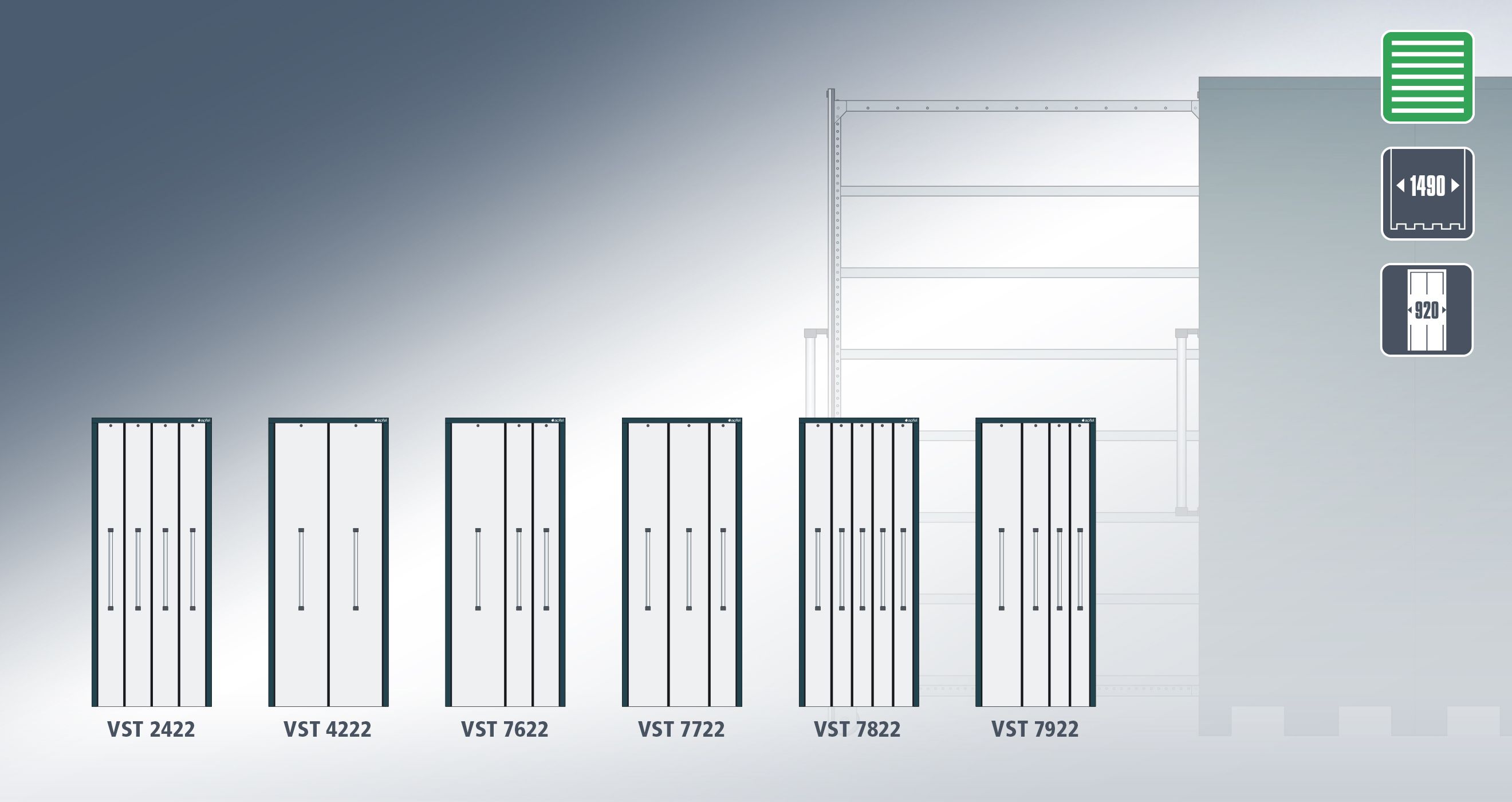 Gli armadi magazzino Set K con 1.490 mm di profondità e 920 mm di larghezza: