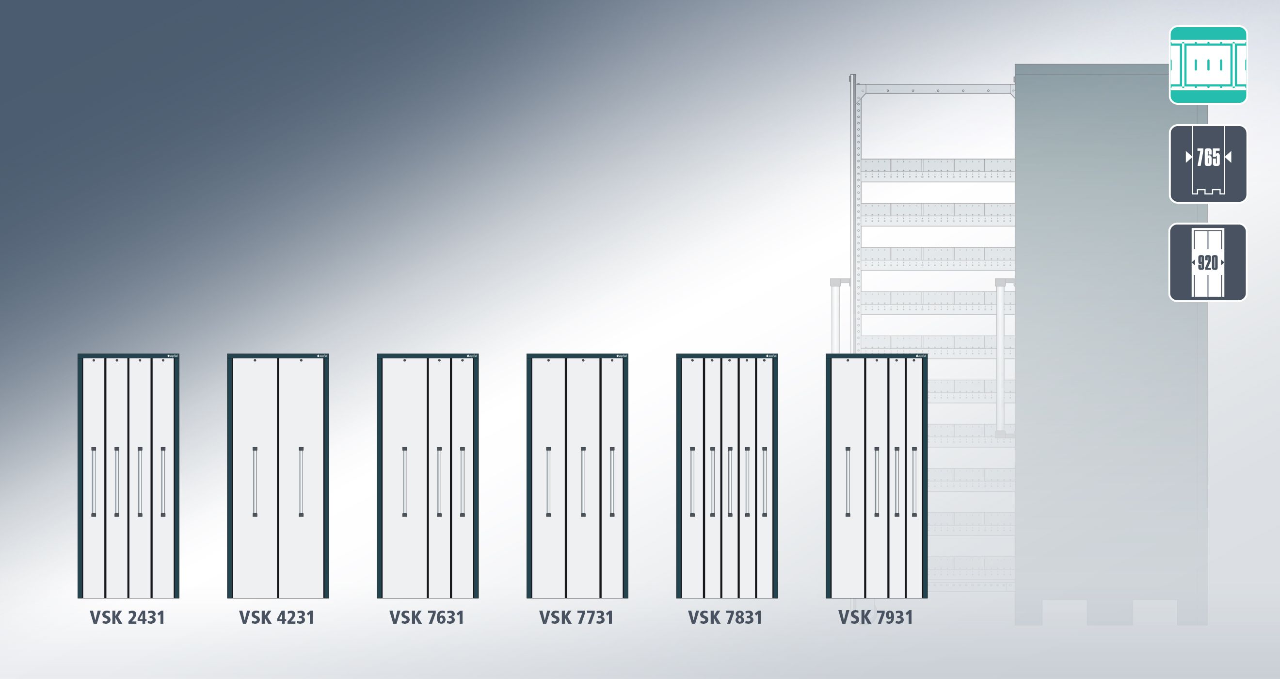 - VSK 7931 (1 cassetto di 300 mm di larghezza, 1 cassetto di 200 mm di larghezza. 2 cassetti di 150 mm di larghezza)