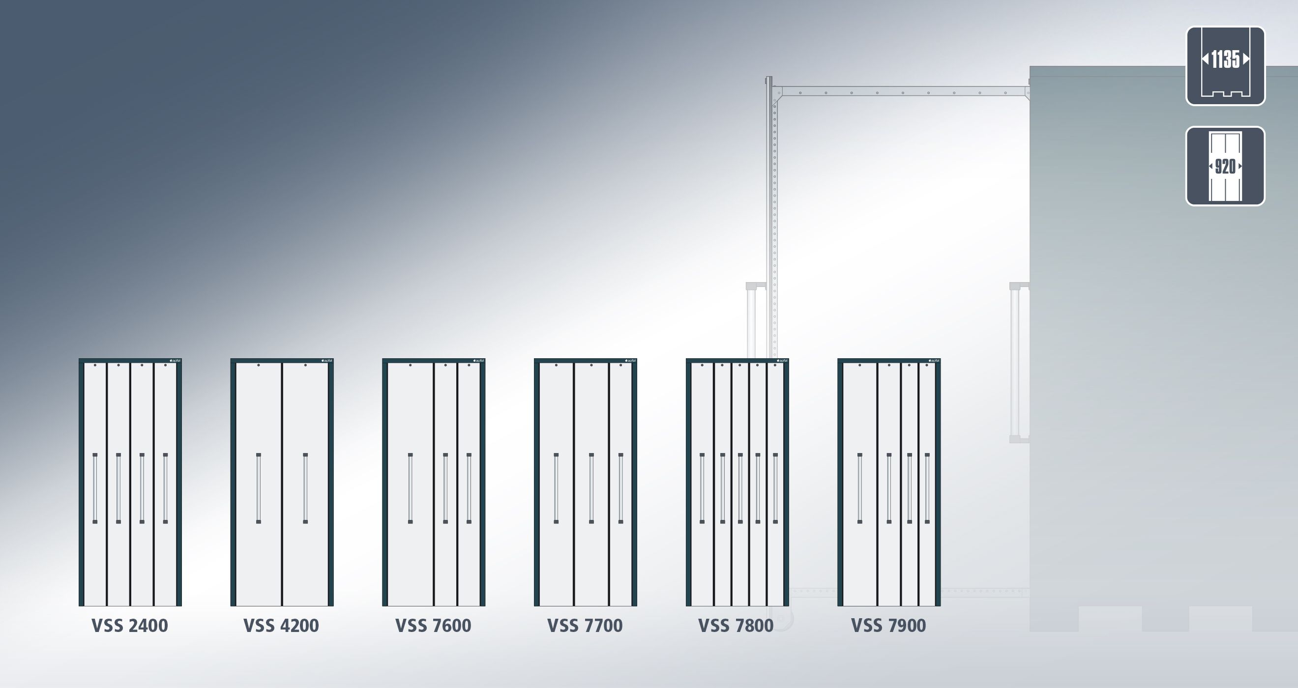 - VSS 7900 (1 cassetto di 300 mm di larghezza, 1 cassetto di 200 mm di larghezza. 2 cassetti di 150 mm di larghezza)