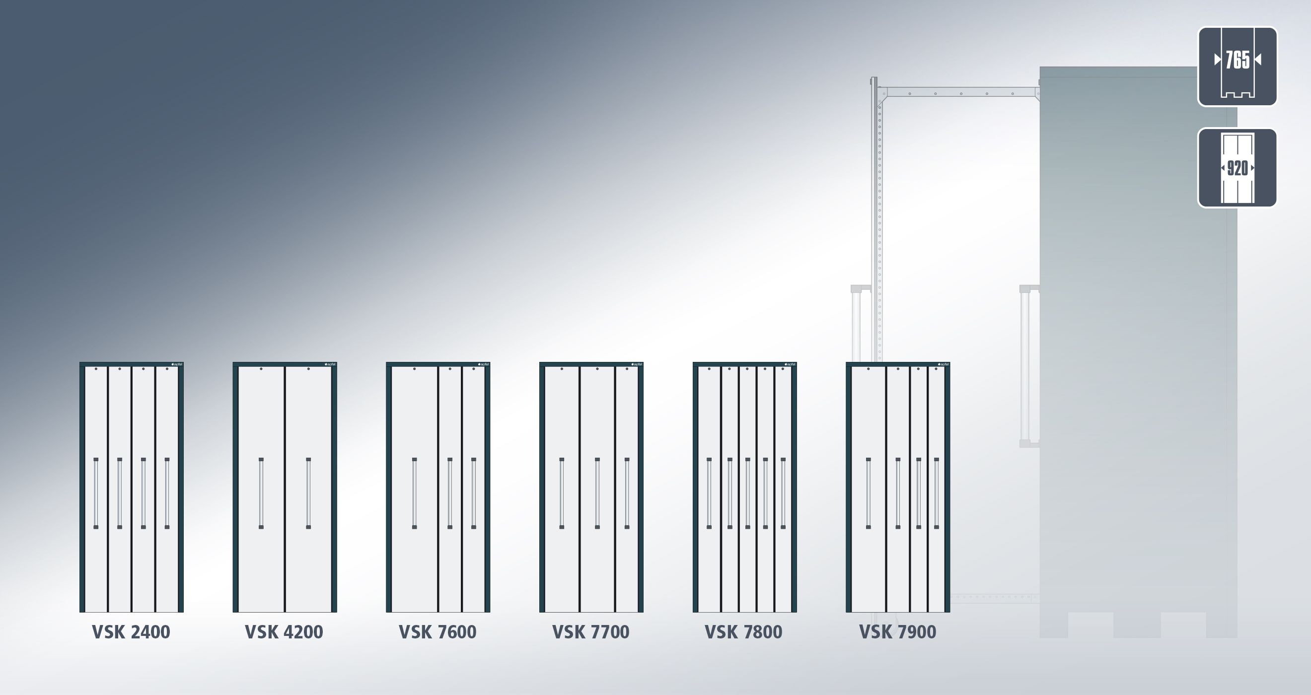 - VSK 7900 (1 cassetto di 300 mm di larghezza, 1 cassetto di 200 mm di larghezza. 2 cassetti di 150 mm di larghezza)