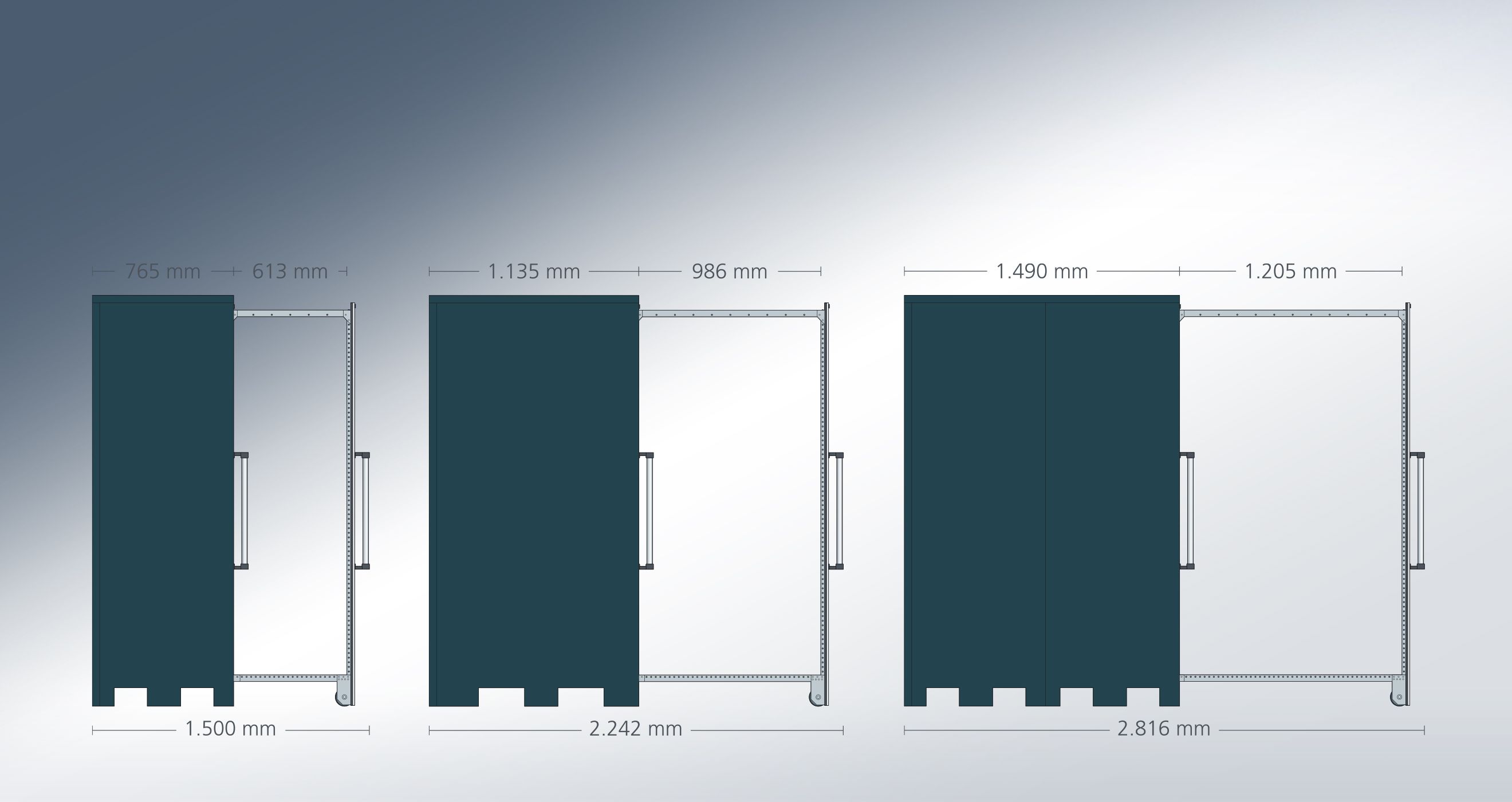 Gli armadi non attrezzati della serie V sono disponibili in tre profondità differenti: