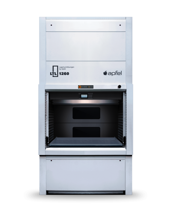 Auf Tablaren mit je 500 kg Tragkraft und einer Nutzfläche von ca. 0,76 m² bevorratet der Lagerturm LTL 1260 große Mengen an schweren Werkzeugen, hohe Stapel von Materialien und alle anderen Lagergüter.