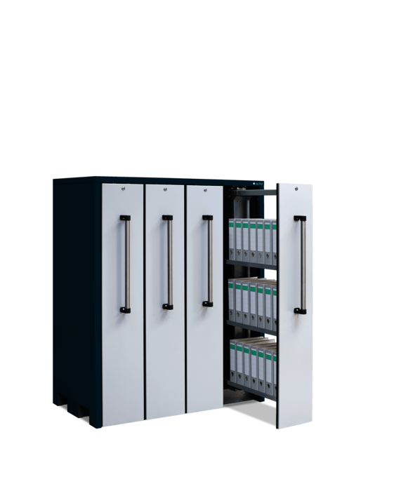 Lagerschrank mit 4 Vertikalauszügen à 300 mm Breite mit je 300 kg Traglast