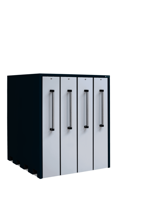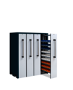 Lagerschrank mit 4 Vertikalauszügen à 300 mm Breite mit je 300 kg Traglast