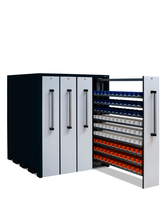 Der mittelhohe Schrank für die Lagerung in kleinen Lagersichtkästen