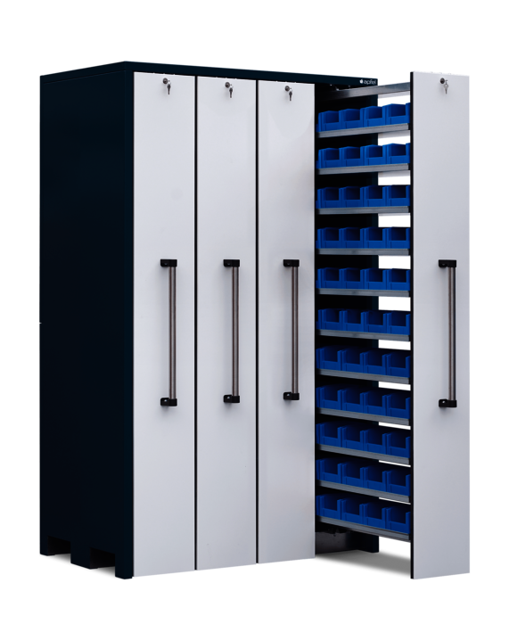 Lagerschrank mit 4 Vertikalauszügen à 300 mm Breite mit je 300 kg Traglast