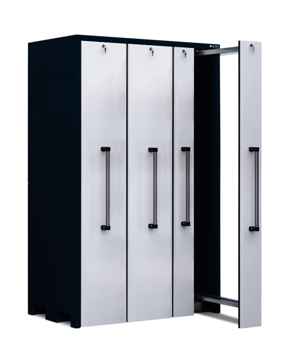 Lagerschrank mit 2 Vertikalauszügen à 400 mm Breite und 2 Vertikalauszügen à 200 mm Breite mit je 300 kg Traglast