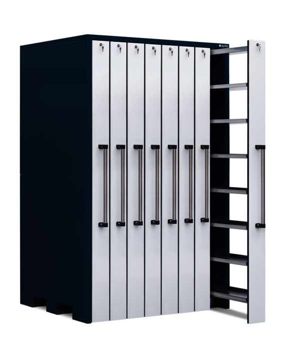 Der Vertikallagerschrank mit 7 Universalwannen pro Auszug