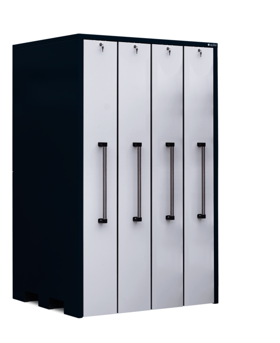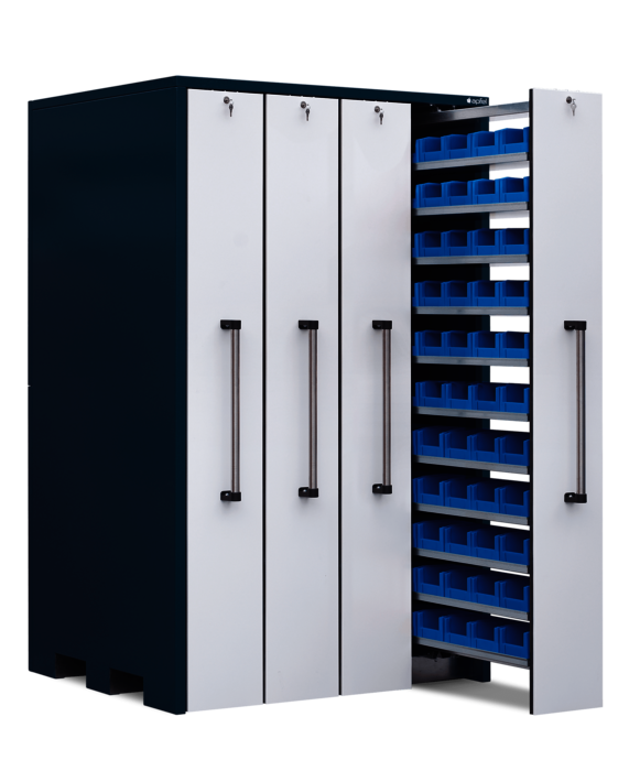 Lagerschrank mit 4 Vertikalauszügen à 300 mm Breite mit je 300 kg Traglast
