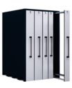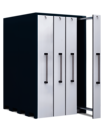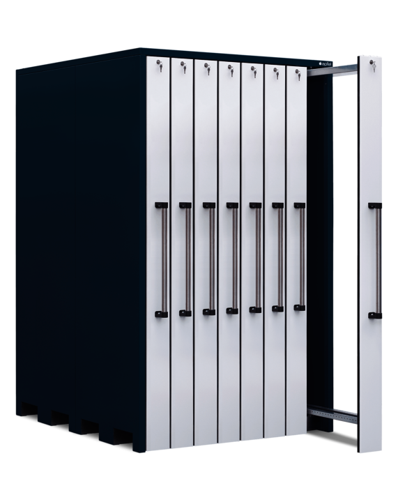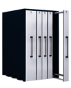 Lagerschrank mit 8 Vertikalauszügen à 150 mm Breite mit je 300 kg Traglast