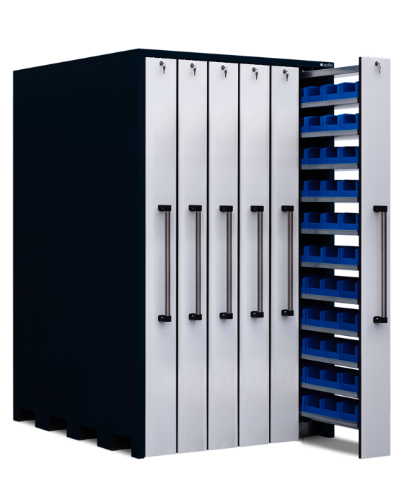 Der Vertikallagerschrank für die Lagerung in Lagersichtkästen