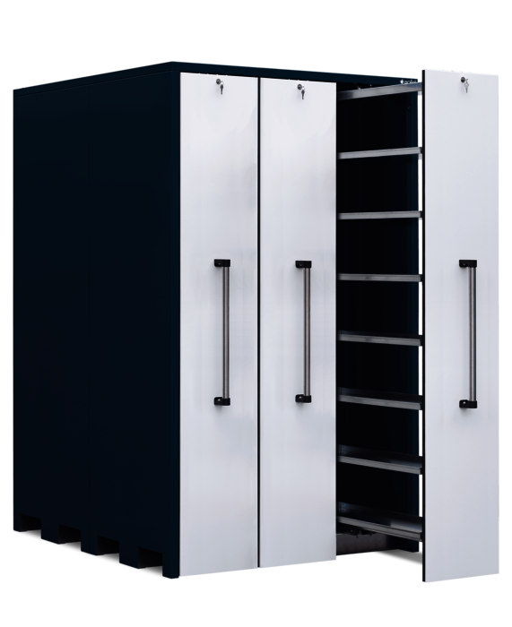 Lagerschrank mit 3 Vertikalauszügen à 400 mm Breite mit je 300 kg Traglast