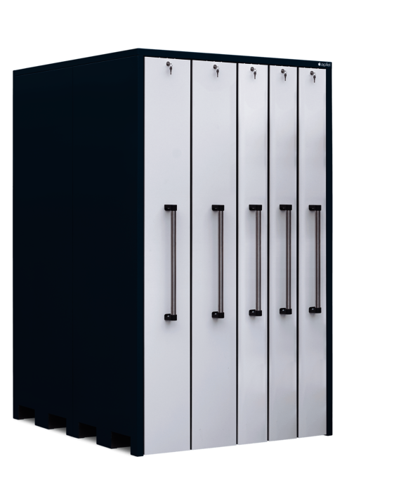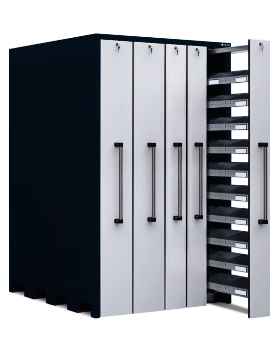 Der Vertikallagerschrank mit 10 Schüttgutwannen pro Auszug