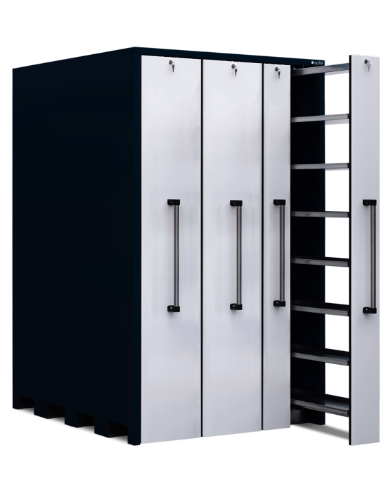 Der Vertikallagerschrank mit 7 Universalwannen pro Auszug