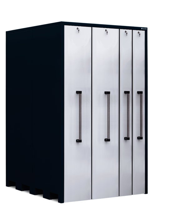 Lagerschrank mit 2 Vertikalauszügen à 400 mm Breite und 2 Vertikalauszügen à 200 mm Breite mit je 300 kg Traglast