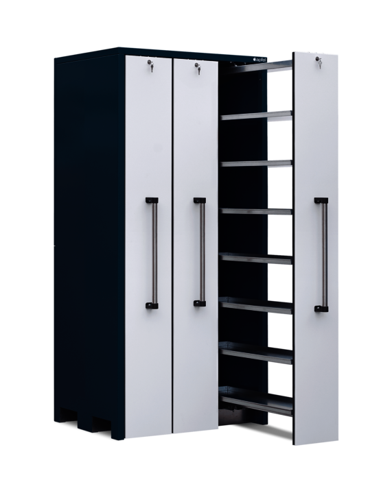 Lagerschrank mit 3 Vertikalauszügen à 300 mm Breite mit je 300 kg Traglast