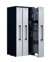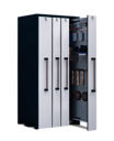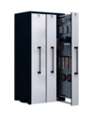 Lagerschrank mit 1 Vertikalauszug à 400 mm, 1 Vertikalauszug à 300 mm und 1 Vertikalauszug à 200 mm Breite mit je 300 kg Traglast