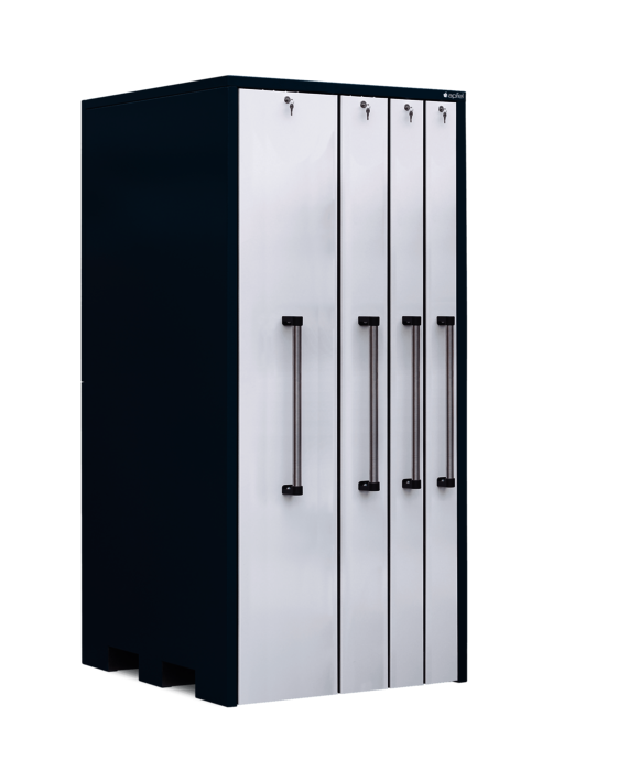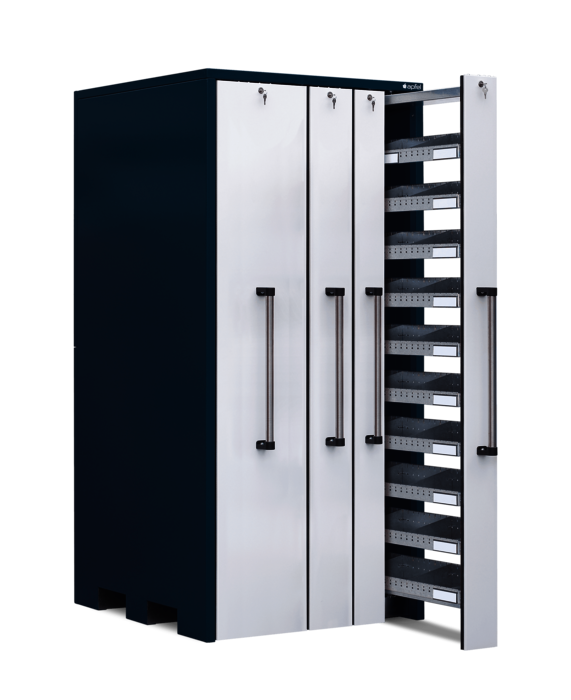 Der Vertikallagerschrank mit 10 Schüttgutwannen pro Auszug