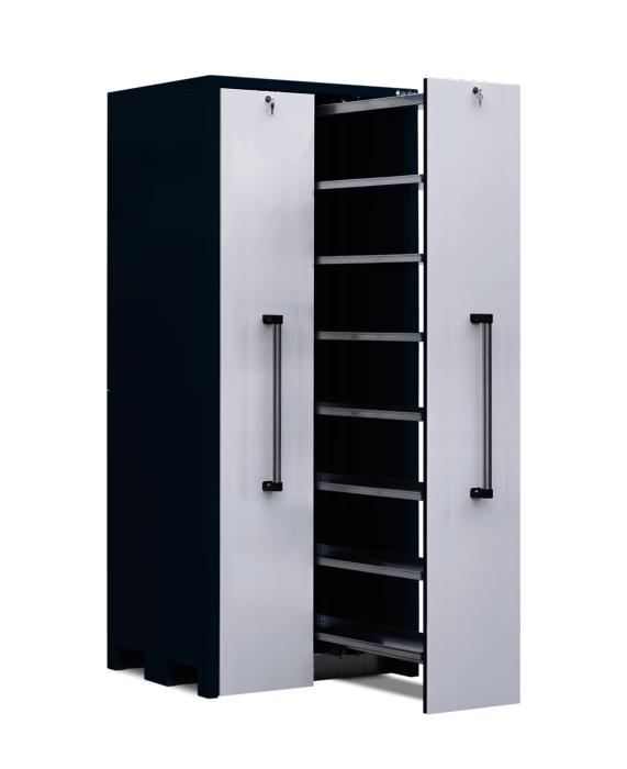 Lagerschrank mit 2 Vertikalauszügen à 400 mm Breite mit je 300 kg Traglast