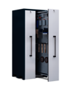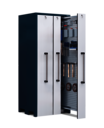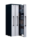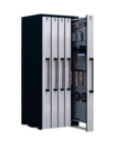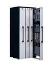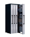 Lagerschrank mit 1 Vertikalauszug à 200 mm und 4 Vertikalauszügen à 150 mm Breite mit je 300 kg Traglast