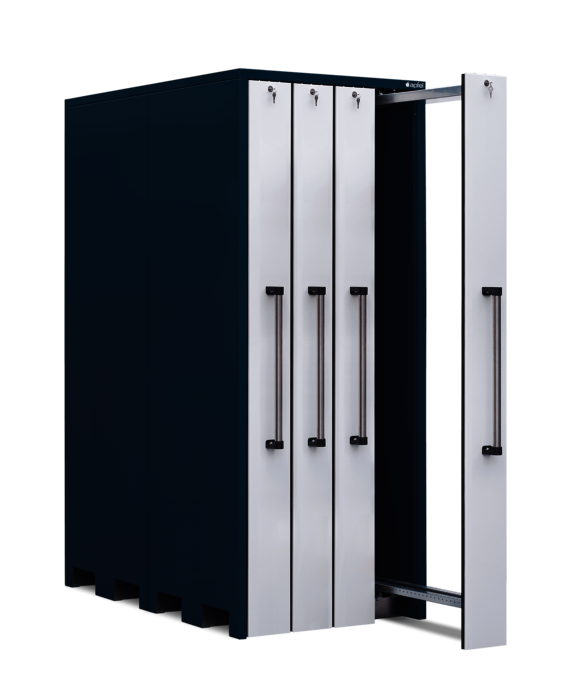Lagerschrank mit 4 Vertikalauszügen à 200 mm Breite mit je 300 kg Traglast