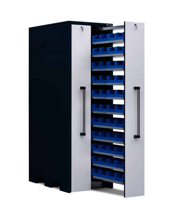 Der Vertikallagerschrank für die Lagerung in Lagersichtkästen