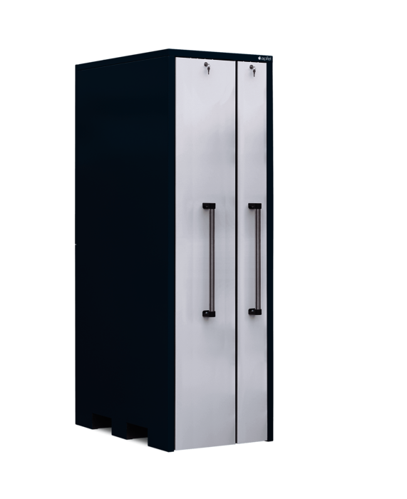 Der Vertikallagerschrank mit 10 Schüttgutwannen pro Auszug