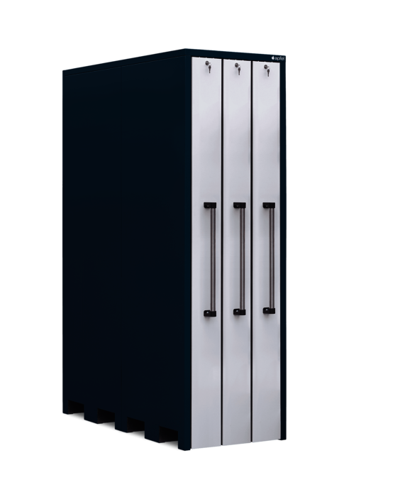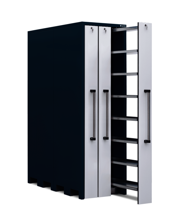 Lagerschrank mit 3 Vertikalauszügen à 200 mm Breite mit je 300 kg Traglast
