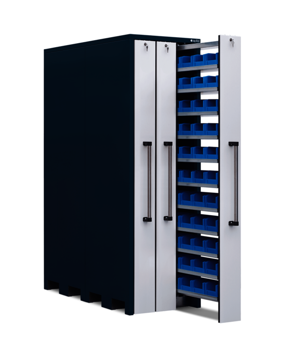 Der Vertikallagerschrank für die Lagerung in Lagersichtkästen