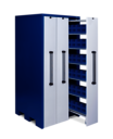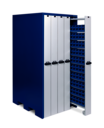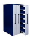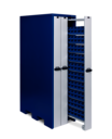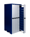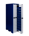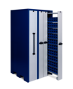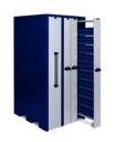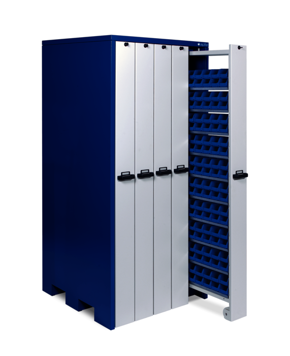 Der klassische Schrank im Hochformat für die Lagerung von bis zu 400 verschiedenen Artikeln nach dem Kanban-Prinzip in doppelt gestapelten Lagerkästen