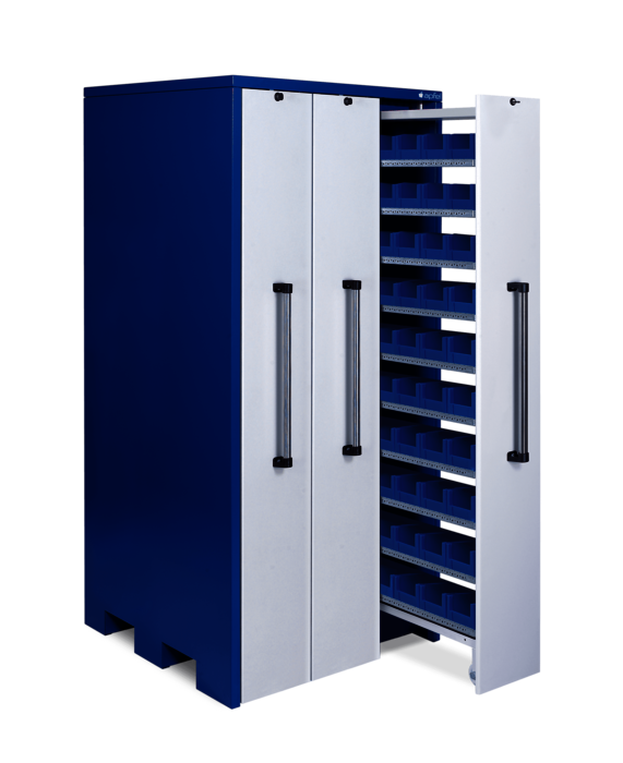 Das Hochformat mit „Panzerauszügen“ zur Aufbewahrung schwerer Lasten, voluminöser Teile oder großer Artikelmengen