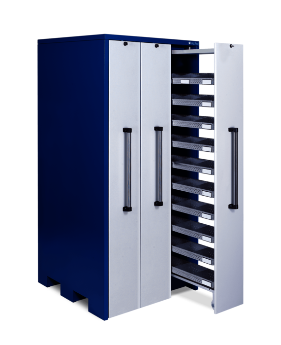 Das Hochformat mit „Panzerauszügen“ zur Aufbewahrung schwerer Lasten, voluminöser Teile oder großer Artikelmengen
