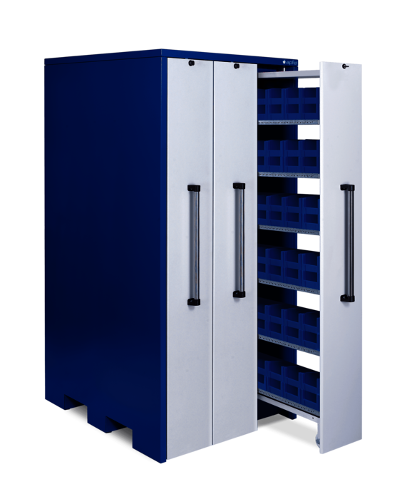 Werkzeugschrank mit 3 Vertikalauszügen à 300 mm Breite mit je 1.800 kg Traglast